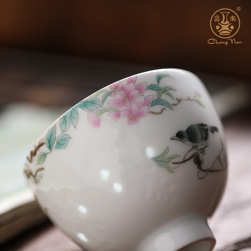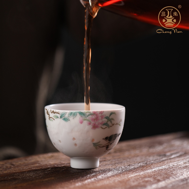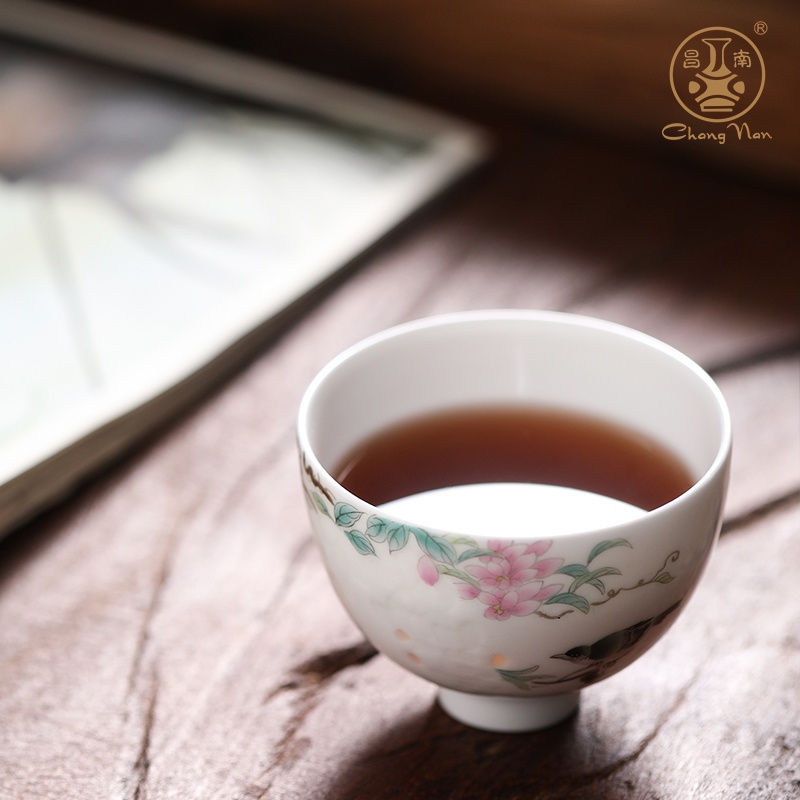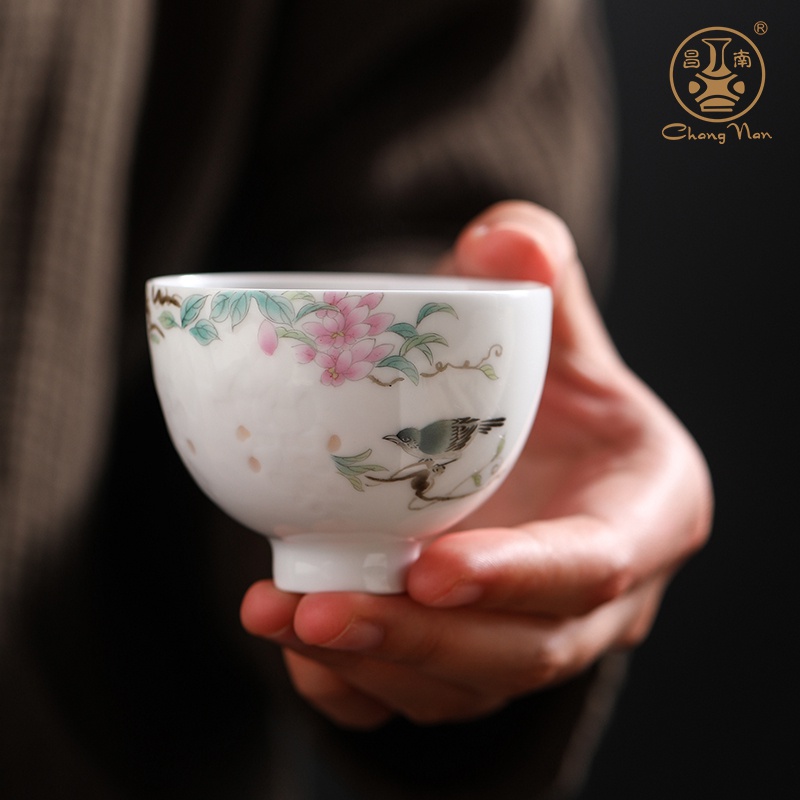 手繪玲瓏“鳥(niǎo)語(yǔ)花香”品茗杯